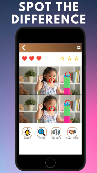 Spot the Difference é um jogo de entretenimento que desafia os jogadores a encontrar diferenças em imagens de alta definição. Com mais de 1000 níveis, o objetivo é localizar três diferenças entre duas imagens, proporcionando um desafio divertido e estimulante. É ideal para quem busca jogos de atenção e observação, podendo ser jogado sozinho ou em companhia de amigos e familiares. Cada nível apresenta novas imagens e diferenças, garantindo que a diversão nunca acabe.